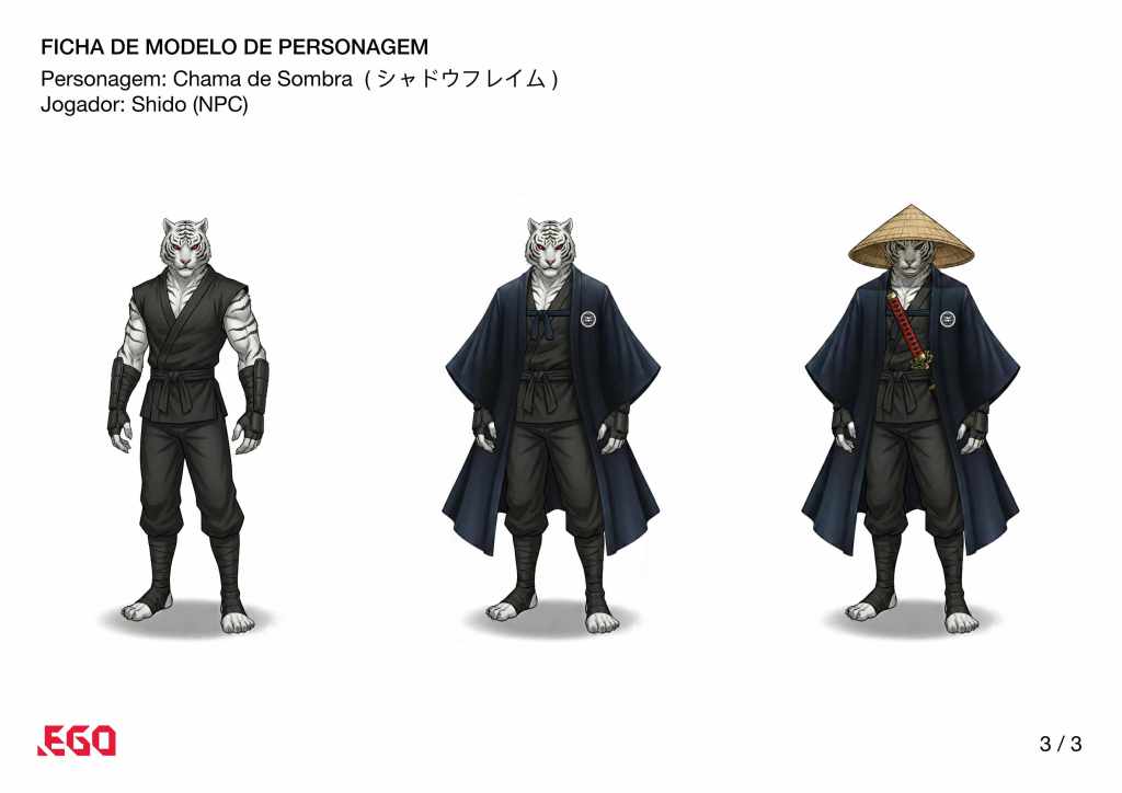 Subitamente no final de 2025, por questões fora do jogo, a mesa foi encerrada subitamente. Esta seria a ilustração do 3º personagem jogador da mesa, o ninja Chama de Sombra (シャドウフレイム).
